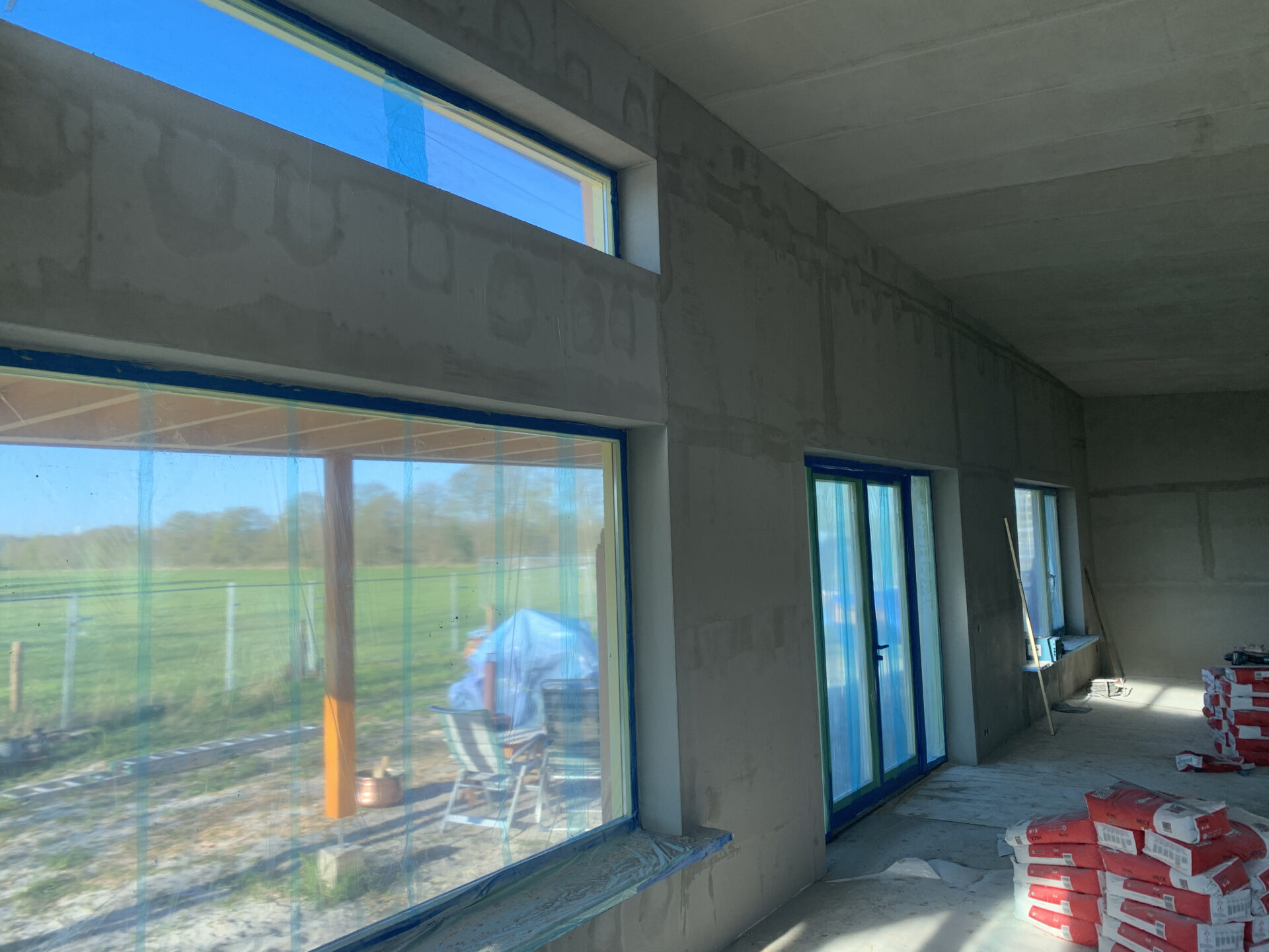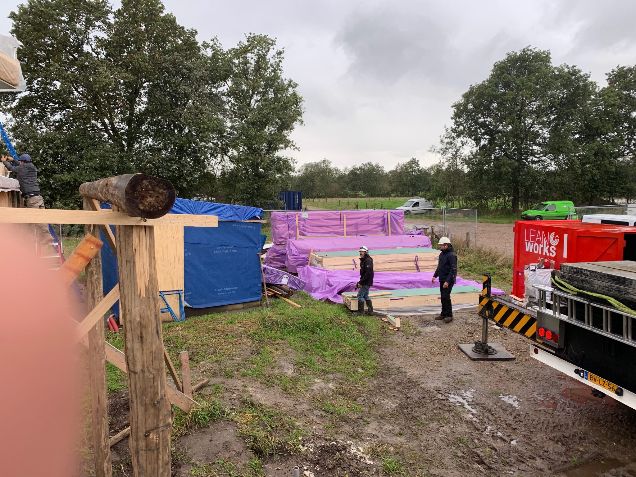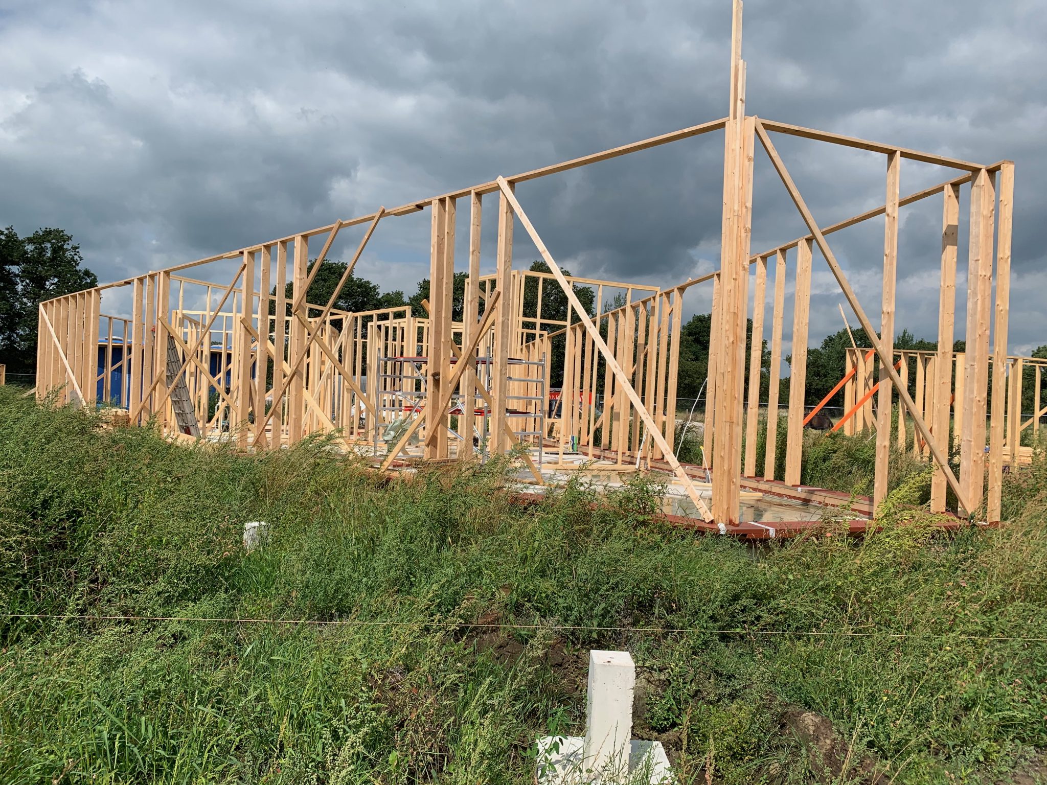 De eerste HSB elementen staan in 4 dagen. Ter plekke gemaakt en geplaatst. Dat kan alleen met zeer goede werkvoorbereidingen, werktekeningen en maatvoering. Feest voor de timmerman.