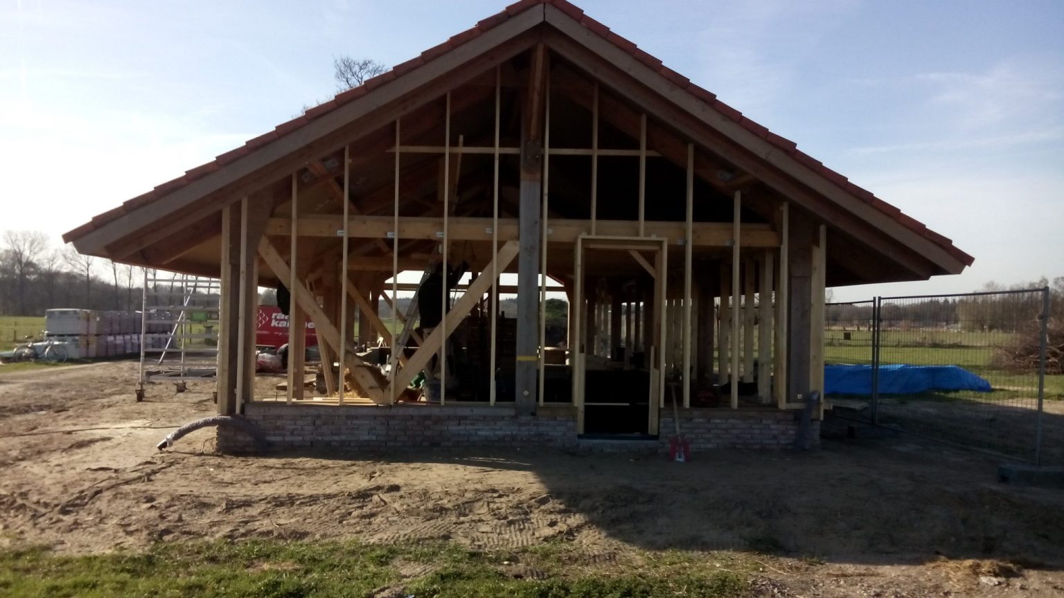 Nieuwbouw project. Multifunctioneel gebouw in samenwerking met leerlingen van het Deltion. Stro gevels, fundering met gebruikte materialen, dakpannen circulair, Inlands en lokaal douglashout, kalkhennep in de topgevels, vrije overspanning gerealiseerd door span skelet met stalen strippen en stangen. Dak van Isovlas.